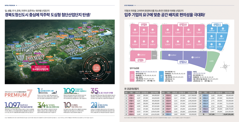 공급되는 산업시설용지는 총 20필지로 첨단제조업, 연구개발, 정보통신 등 경상북도가 집중육성 하고자 하는 미래 첨단산업들이 대거 포함됐고, 최근 인근 지역 제조업체 3개 기업이 입주를 결정함에 따라 활성화되고 있는 입주 수요에 대응하기 위해 신속하게 추진되고 있다.