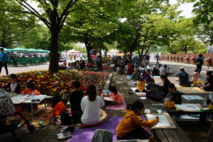 5일 어린이날을 맞아 고양국제꽃박람회가 열리고 있는 고양시 호수공원에서는 ‘꽃 그림 그리기 대회’가 열렸다. 대회에 참가한 어린이들은 옹기종기 모여 앉아 그림 그리기에 열중하고 있다. 오는 13일까지 개최되는 2018고양국제꽃박람회는 아이들을 위한 다양한 체험프로그램도 마련돼 있어 가족 단위 관람객들의 나들이 장소로 제격이다.
