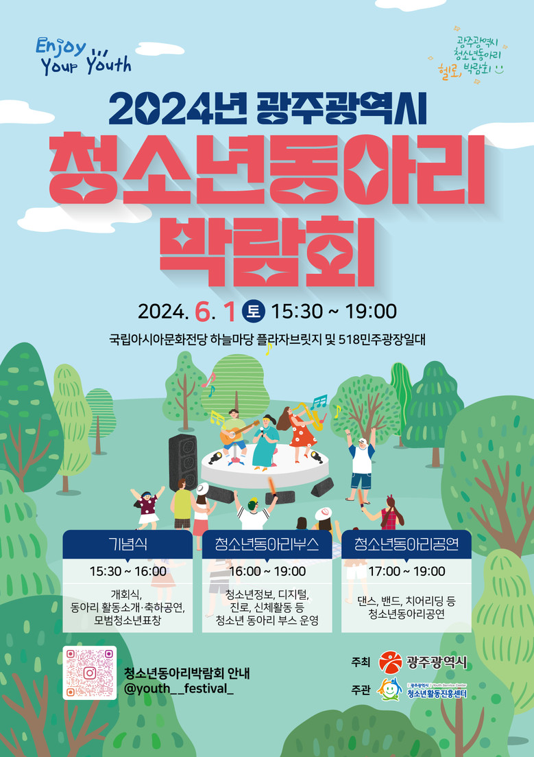 광주광역시(시장 강기정)는 오는 6월1일 오후 3시30분부터 오후 7시까지 국립아시아문화전당 하늘마당 및 5·18민주광장 일대에서 ‘제3회 청소년동아리박람회’를 개최한다.