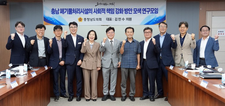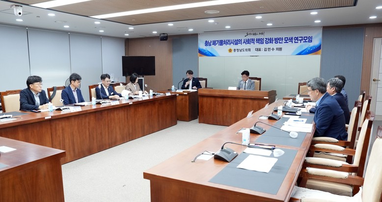 충남도의회 ‘충남 폐기물처리시설의 사회적 책임 강화 방안 모색 연구모임’(대표 김민수)은 18일 보건복지환경위원회 회의실에서 2차 회의를 열어, 폐기물처리시설 운영 현황을 점검하고 주민 지원 방안을 논의했다.