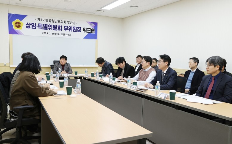 [충남 세계타임즈=이현진 기자] 충남도의회(의장 홍성현)는 19일 보령시 파레브 호텔에서 제12대 후반기 충청남도의회 상임‧특별위원회 부위원장 워크숍을 열어, 남은 후반기 동안 더 나은 의정활동을 펼치기 위한 토론의 시간을 가졌다.