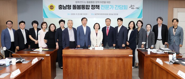 도의회는 22일 보건복지환경위원회 회의실(202호)에서 「함께 만드는 충남형 돌봄통합 정책」을 주제로 전문가 간담회를 개최했다.