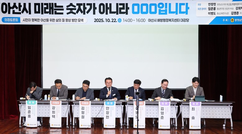 안장헌 의원은 “오늘 토론회는 숫자와 지표가 아닌 시민의 시선으로 도시의 가치를 다시 생각해보는 자리였다”며 “충남도의회는 시민과 함께 정책의 방향을 만들어가는 열린 의정의 장을 지속적으로 확대하겠다”고 밝혔다.