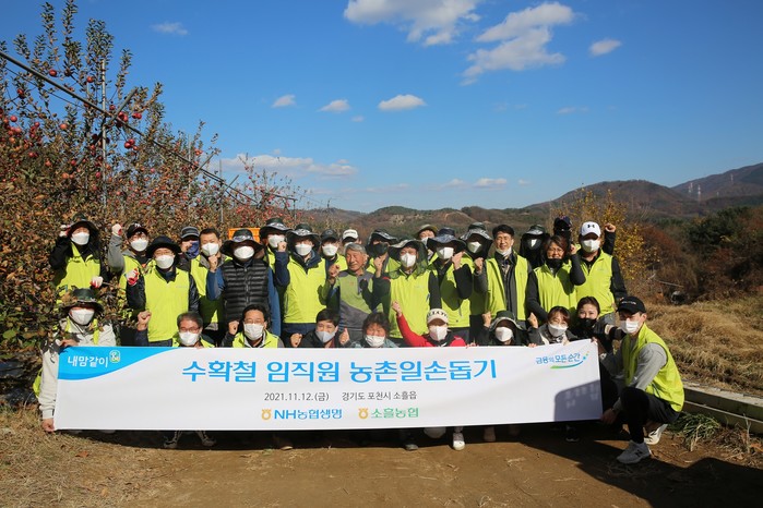 [세계타임즈 이송원 기자]NH농협생명이 11월 12일(금) 수확철을 맞아 포천 소흘읍을 방문해 농촌 일손돕기를 실시했다. 임직원 30여명은 수확시기에 많은 인력이 필요한 사과 수확 작업을 도왔다.