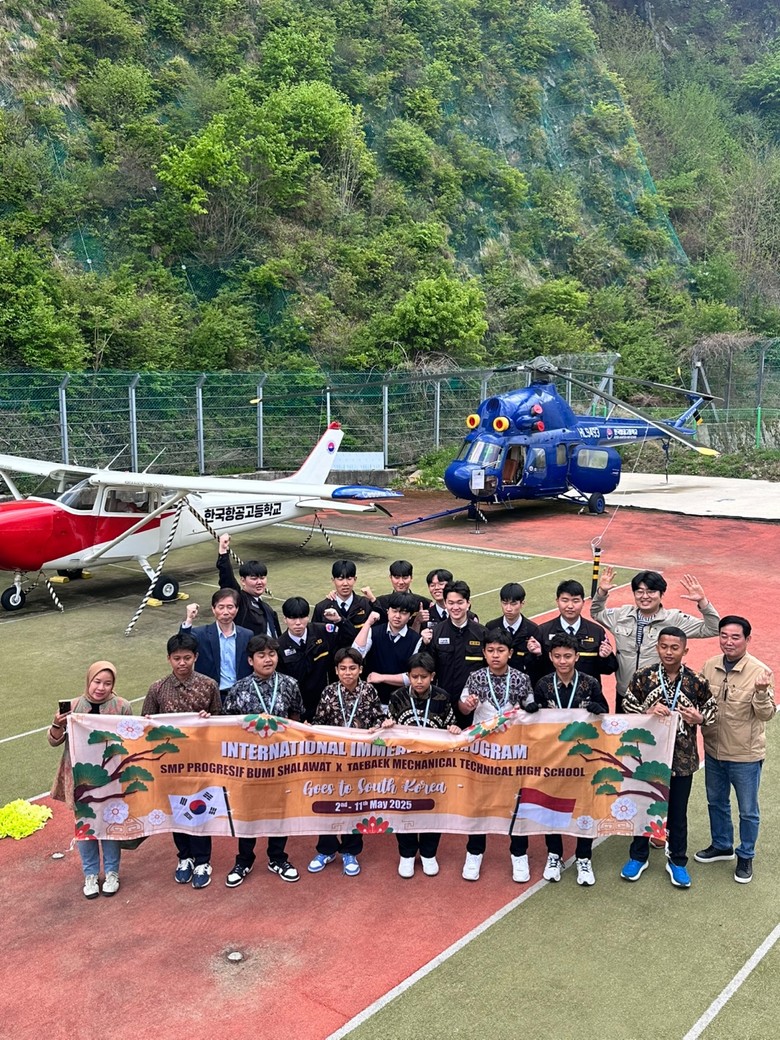 [강원도 세계타임즈=김민석 기자] 한국항공고등학교(교장 문명호)는 지난 5월 7일(수) 인도네시아의 SMP Progresif Bumi Shalawat 중학교 학생 37명을 학교로 초청해 항공정비 실습과 한국 문화체험 프로그램을 진행했다.