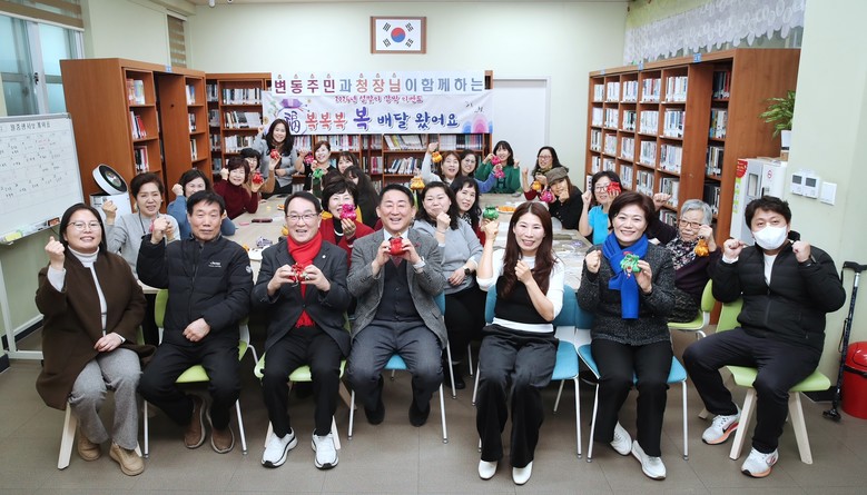 오후에는 변동으로 이동해 동 주민자치문화센터에서 주민들과 설맞이 복주머니를 만들었다. 이어 교통안전공단 대전검사소 일원에서 무단투기 쓰레기를 주우며 자생단체 회원들과 변동 재개발 지역에 대한 의견을 주고받았다. 마지막 일정으로는 변정경로당과 동 행정복지센터를 각각 방문해 주민들에게 인사를 전했다.