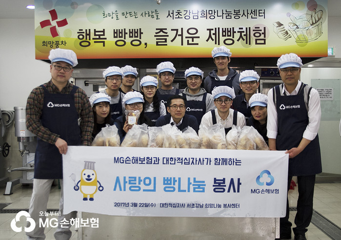 이에 MG손보 관계자는 “사랑과 정성을 담아 만든 빵을 이웃에게 전달할 수 있어 뿌듯했다”며 “앞으로도 지역사회 이웃에게 온기를 전하는 다양한 사회공헌활동을 꾸준히 진행할 것”이라고 말했다.