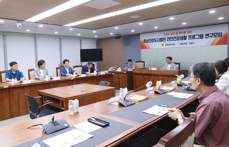 [충남 세계타임즈=백택기 기자] 충남도의회 ‘도민의 삶의 질 향상을 위한 충남건강도시발전 전인건강생활프로그램 연구모임’(대표 이철수)은 18일 복지환경위원회 회의실에서 발족식 및 1차 회의를 열고 ‘충남건강도시발전 전인건강생활프로그램 연구용역’ 착수보고회를 개최했다.