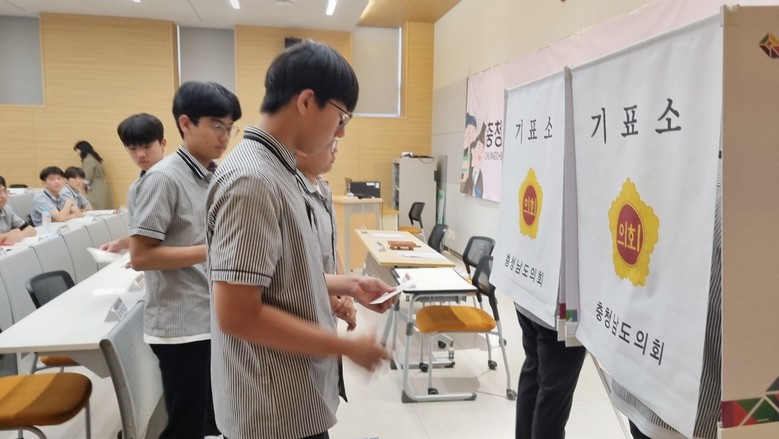 이날 천안 북일고 학생들은 의장 선거에 출마한 학생들의 정견 발표를 들은 후 투표를 통해 의장을 선출하고, 도의원 역할을 경험하며 주민대표의 중요성을 체험했다.