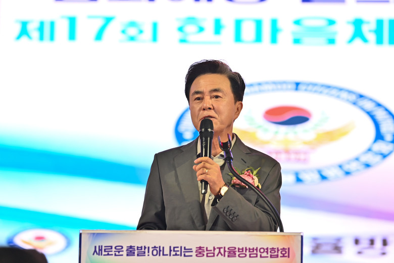 [충남 세계타임즈=이현진 기자] 김태흠 지사는 15일 청양군민체육관에서 열린 ‘제17회 범죄예방 결의대회 및 한마음 체육대회’에 참석해 충청남도 자율방범연합회의 노고를 격려하고 감사를 전했다.