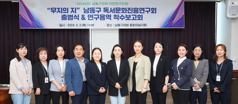[남동구 세계타임즈=심하린 기자] 남동구의회 의원연구단체 「‘무지의 지’ 남동구 독서문화진흥연구회」(회장 박정하의원) 가 지난 2일 남동구의회 중회의실에서 출범식 및 연구용역 착수보고회를 갖고 본격적인 연구에 들어갔다.
