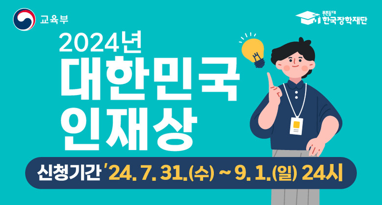 최경화 대학인재정책과장은 “2024 대한민국 인재상 후보자 공모에 창의와 열정을 가진 우수한 지역 인재들이 많이 참여해 수상의 영예를 누리고 지원을 받을 수 있기를 바란다”고 말했다.