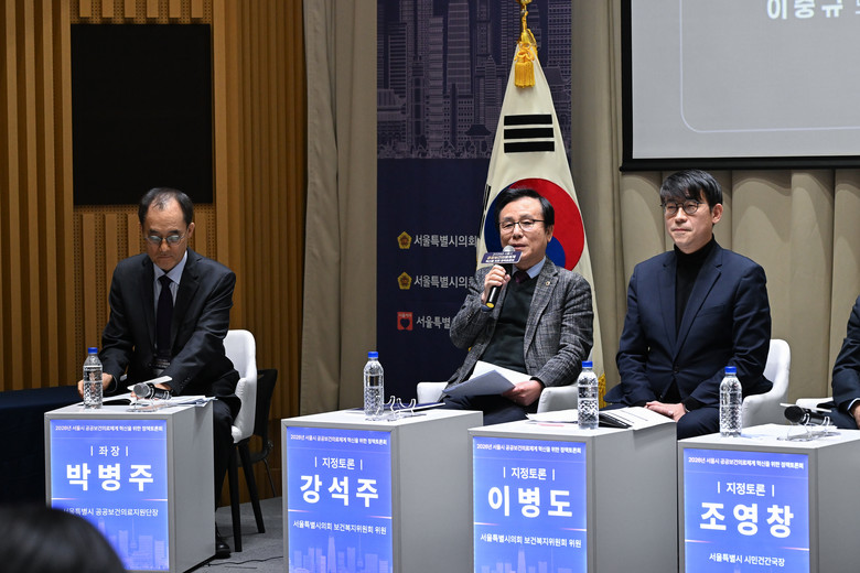 이날 지정토론자로는 강석주 시의원을 비롯하여 이병도 시의원, 조영창 서울시 시민건강국장, 이중규 보건복지부 공공보건정책관, 이현석 서울시 서울의료원장, 소예경 금천구 보건소장, 이영문 全 국립정신건강센터장, 조유라 동아일보기자 등이 참석해 주제 발표에 이어 심층적인 논의의 자리를 가졌다.