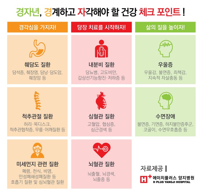 -방심하기 쉬운 췌담도, 척추관절, 미세먼지 질환 및 내분비, 심뇌혈관질환 체크