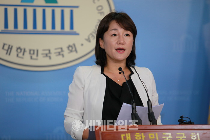 더불어민주당 이재정대변인 현안 관련브리핑 하고 있다[사진=김인수기자]