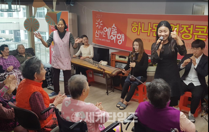 [세계타임즈 심하린기자]국악창작그룹 자락이 ‘하나 된 열정콘서트’를 통해 문화 예술을 쉽게 접하기 어려운 시민과 어르신 복지시설 및 양로원 등을 직접 찾아가며 문화예술 향수 기회를 제공하고 있다.
