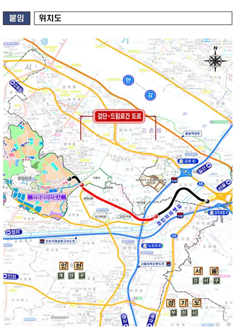 이번 도로 개통으로 검단지구 유현사거리에서 계양구 드림로까지 주행거리는 1.2km 감소(5.1km→3.9km,△24%)하고, 이동시간 10분 단축(18분→8분,△44%)될 것으로 예상된다.