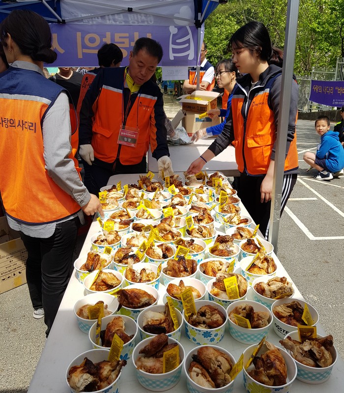 신상일 바베큐통닭봉사 회장은 “어린이날에 뜨거운 통닭을 맛있게 먹는 아이들의 모습에서 행복과 보람을 느낀다.“고 말했다.