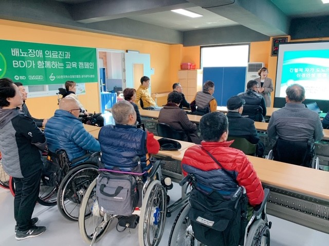 전남대학교병원 자가도뇨 환자 교육 및 요역동학(UDS) 전담 박소정 간호사가 21일 진행한 이번 건강강좌는 한국척수장애인협회 광주광역시협회 회원을 대상으로 척수장애인들의 일상생활에서 가장 중요한 건강관리라 할 수 있는 올바른 청결간헐자가도뇨(CIC)에 대한 이해를 돕기 위해 전문의료진을 초빙, 바드코리아가 진행한 첫 공개강좌이다.