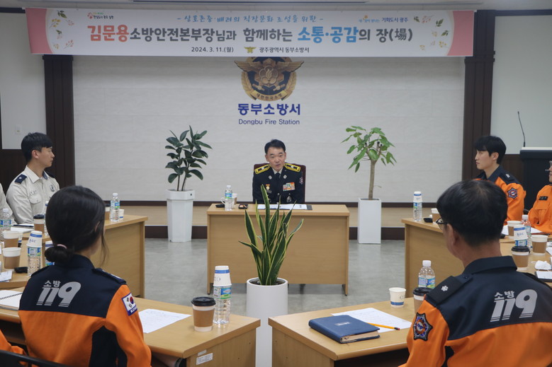 [광주 세계타임즈=손권일 기자] 광주광역시소방안전본부 김문용 본부장은 11일 동부소방서를 시작으로, 오는 22일까지 5개 소방서, 소방학교, 119특수대응단, 빛고을국민안전체험관 등 지역 소방기관을 찾아 직원들과 소통·공감의 시간을 갖고 있다.