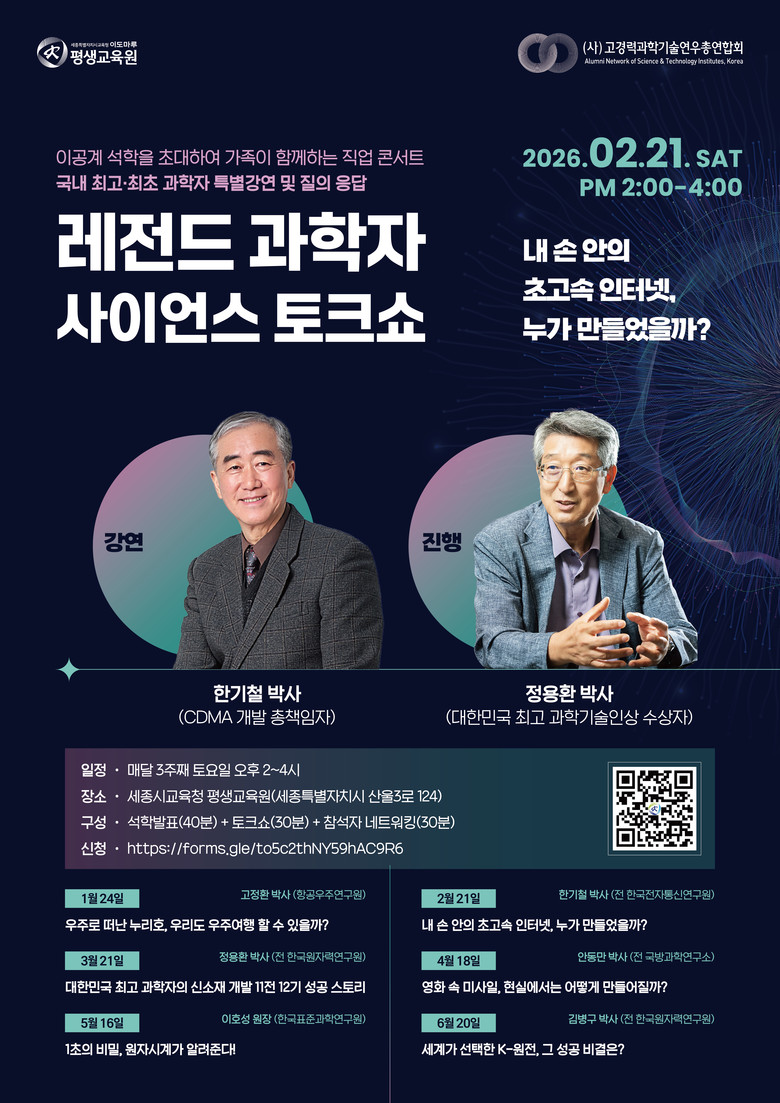 또한 2월 21일(토) 오후 2시에는 가족이 함께 참여할 수 있는 대한민국 과학계의 거목을 직접 만나는 ‘레전드 과학자 토크쇼’가 열린다.
