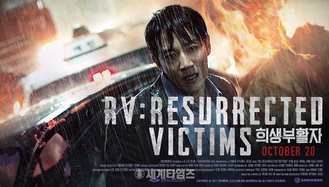 미국판 포스터에는 영어 제목인 'RV: Resurrected Victims'와 한글 '희생부활자'가 함께 적혀 있어 눈길을 끌며, 비가 내리는 가운데 비장한 기운이 느껴지는 김래원의 얼굴 뒤로 불이 타올라 영화에 대한 궁금증을 자아낸다.