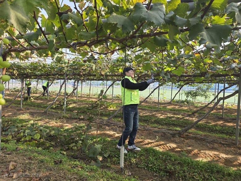 이날 경영지원부문 임직원들은 일손이 부족한 포도 농가에 방문하여 포도나무 가지치기와 마을 환경정비 작업 등 일손 돕기에 구슬땀을 흘렸다.