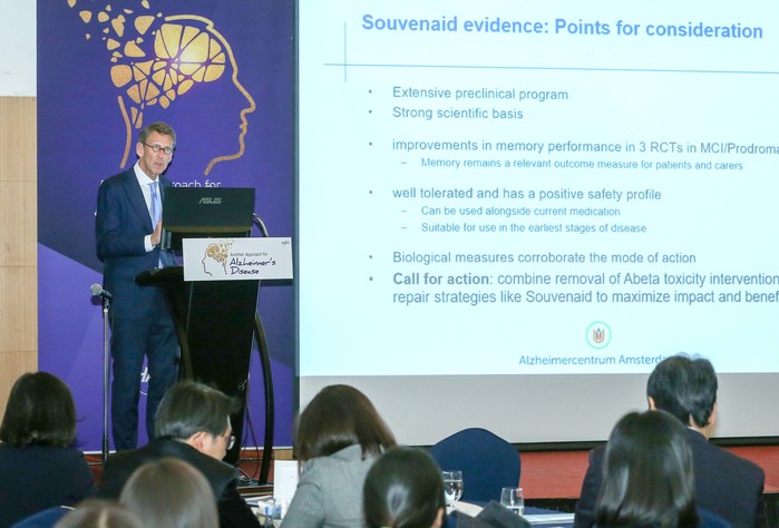 이번 ‘AAA심포지움’에는 네덜란드 암스테르담 자유대학교(VU University Amsterdam) 신경과 교수이자 알츠하이머센터 소장을 역임하고 있는 필립쉘튼(Philip Scheltens)교수를 비롯해 국내 치매 권위자인 서울의대 신경과 김상윤 교수, 인하의대 신경과 최성혜 교수가 발표를 맡았다. 이날 심포지움에는 신경과, 정신과 전문의 등 약 60여명의 전문가가 참석했다.