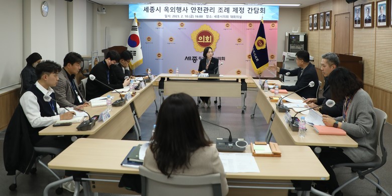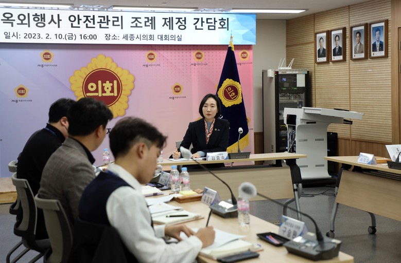 세종시의회 교육안전위원회 김효숙 의원(더불어민주당, 나성동)은 10일 오후 4시 의회청사 1층 대회의실에서 세종시청 사회재난과‧안전정책과‧체육진흥과‧관광진흥과 담당자와 교육청 학교안전과 담당자 등 관계 부서와 함께 ‘세종특별자치시 옥외행사 안전관리 조례’ 제정을 위한 간담회를 개최했다.