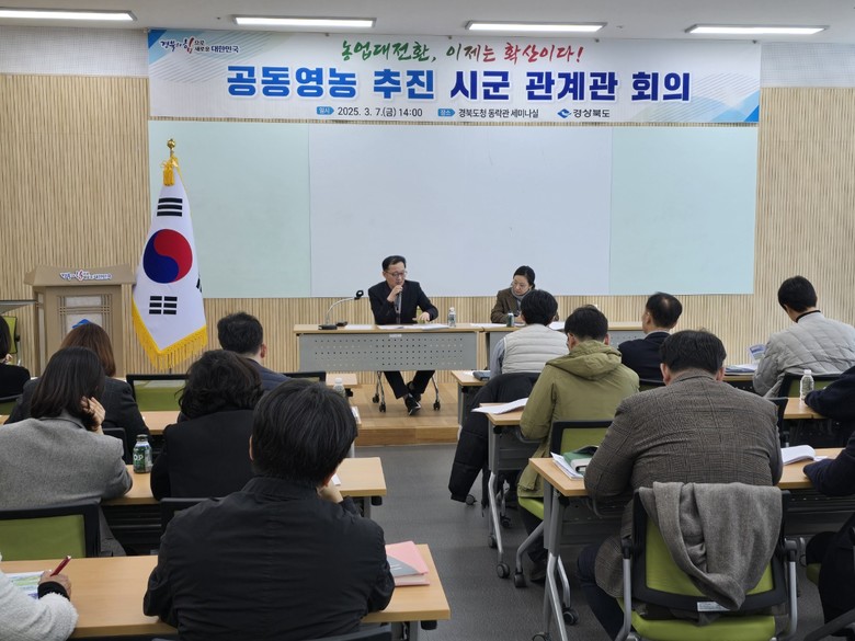 [경북 세계타임즈=한윤석 기자] 경상북도는 7일 농업대전환 확산 분위기 조성과 시군의 자발적인 참여 유도를 위해 ‘공동영농 확산 시군 관계관 회의’를 개최했다.