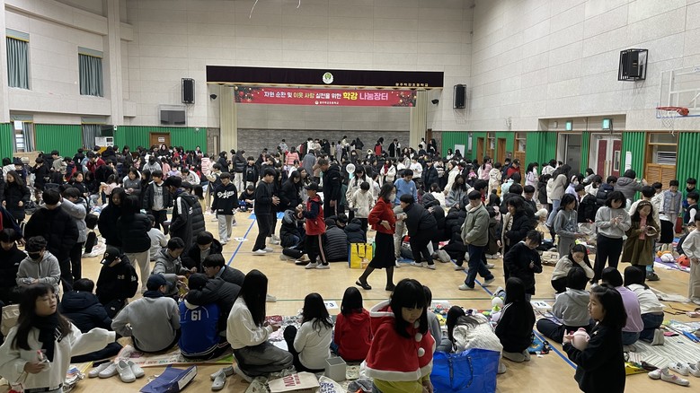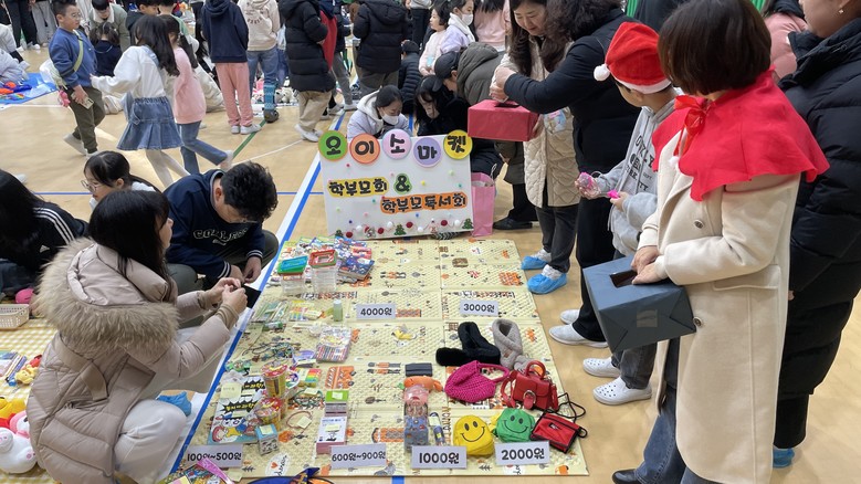 [광주 세계타임즈=손권일 기자] 광주학강초등학교 학생들이 지난 24일 교내 강당에서 연말을 맞이해 자원순환과 이웃 사랑 실천을 위한 ‘학강 나눔장터’를 열었다.