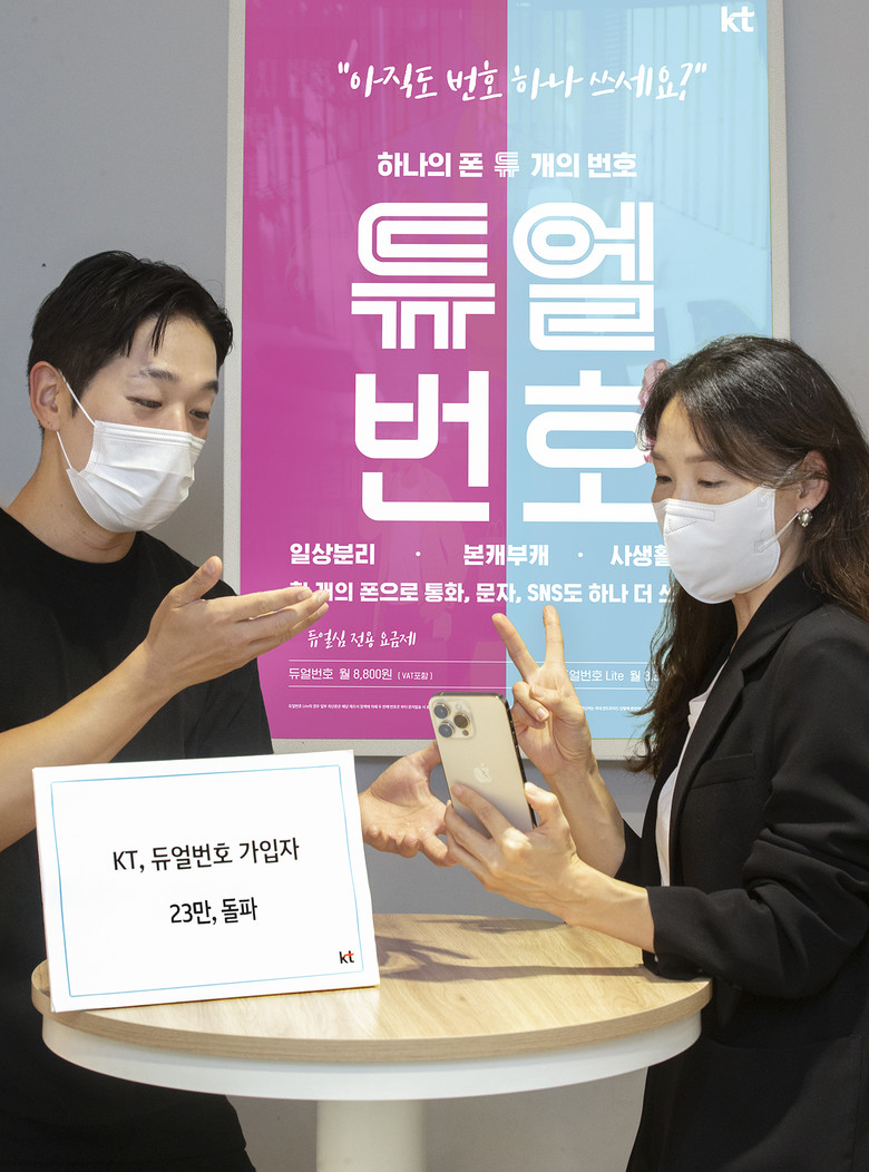 실제로 듀얼번호는 젊은 층의 고객에게 사랑 받고 있다. KT는 전체 듀얼 상품 가입자 중 50%가 2, 30대로, 일상과 업무를 분리하고 싶어하는 사회초년생이나, 다양한 취향을 당당히 즐기는 해당 세대의 니즈를 듀얼 상품이 충족했다고 설명했다.