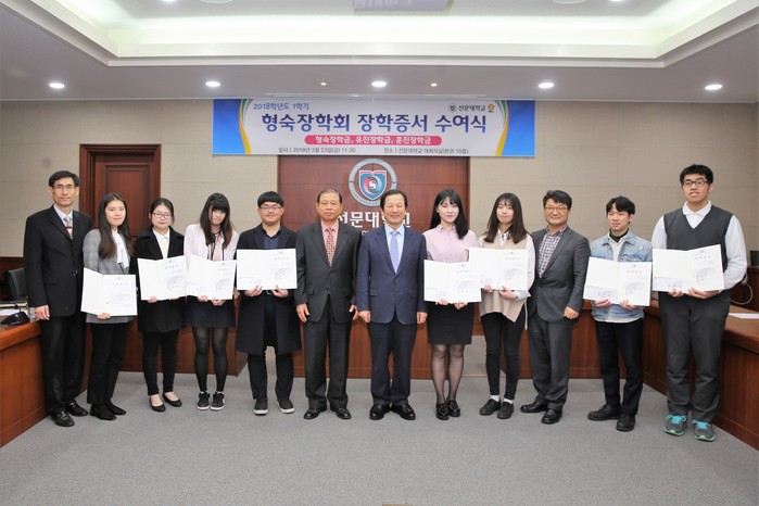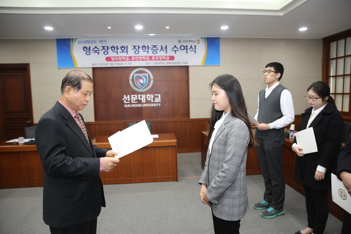 형숙장학회는 이순형·이선숙 이사장 부부의 이름을 딴 장학회로 1996년부터 23년째 매학기 선문대학교에 장학금을 기부해오고 있다. 지금까지 3억2700만원 장학금을 324명의 학생들에게 전달됐다.