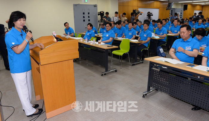 25일 오후 세종특별자치시 조치원읍 신안리 홍익대학교 국제연수원에서 열린 2017 정기국회 대비 더불어민주당 국회의원 워크숍에 참석한 추미애 대표가 인사말을 하고 있다. 2017.08.25