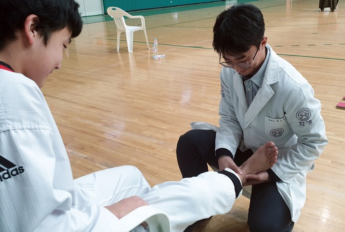 대부분의 태권도 기술이 발차기인만큼 선수들은 항상 무릎·발목 염좌와 같은 부상 위험에 노출돼 있다. 이번 대회에서도 진료소를 찾은 선수들 가운데 하체에 부상을 입은 경우가 많았다. 염좌를 방치할 경우 통증이 만성화되거나 관절염 등으로 발전할 수 있기 때문에 즉각적인 진단과 치료가 필수적이다.