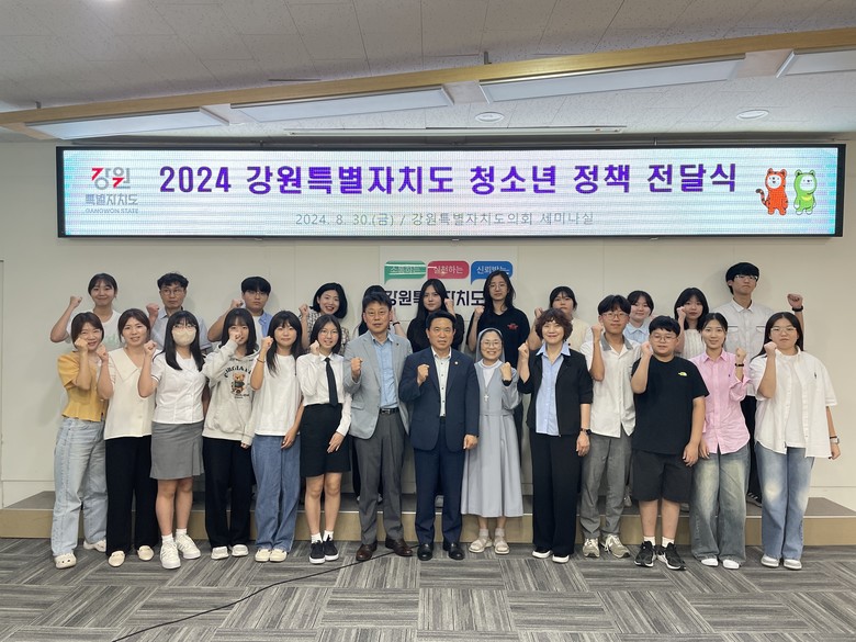 [강원도 세계타임즈=김민석 기자] 원제용 강원특별자치도의회 사회문화위원장은 8월 30일(금) 강원특별자치도의회 세미나실에서 열린 2024 청소년정책 전달식에 참석했다.