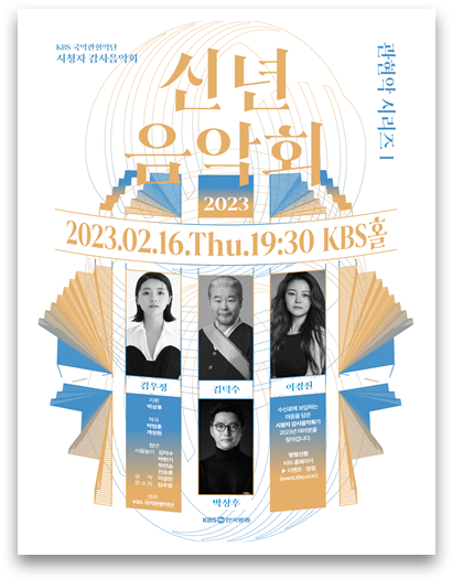 KBS 국악관현악단의 첫 감사음악회는 2월 16일 저녁 7시 30분 KBS홀에서 성대하게 펼쳐진다. 만 38세의 나이로 KBS국악관현악단 역사상 최연소 상임지휘자로 선임되어 올해부터 새롭게 KBS 국악관현악단을 이끄는 제6대 박상후 상임지휘자의 지휘로 한국 전통 타악의 레전드 김덕수 사물놀이와 소프라노 이경진, 국립창극단의 젊은 소리꾼 김우정이 함께 다양한 레퍼토리를 선보인다.