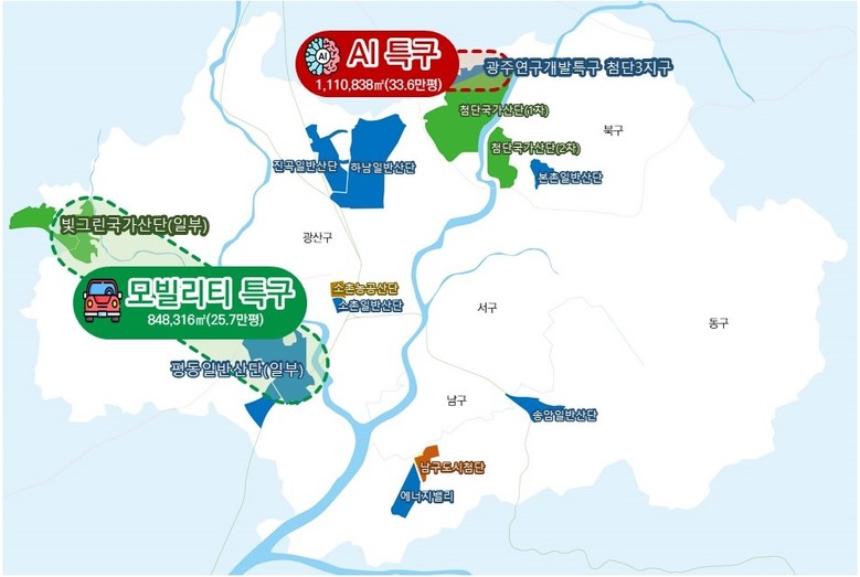 기회발전특구 신청 면적은 빛그린산단, 연구개발특구 첨단3지구 등 약 59만평(195만9154㎡) 규모이다. 광주시는 모빌리티와 인공지능 2대 산업 중심의 1차 특구 지정을 통해 관련 기업 유치와 산업 육성에 박차를 가하겠다는 방침이다.