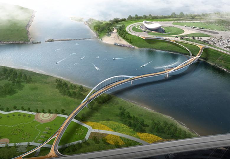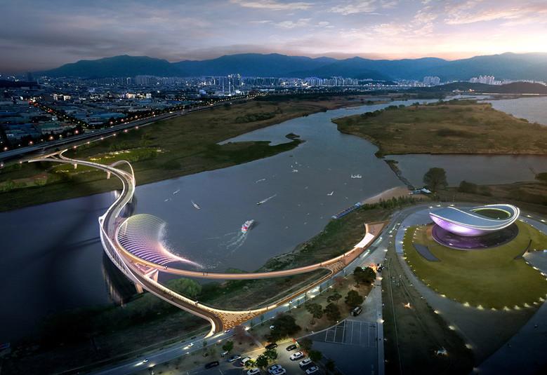 이 사업의 핵심인 랜드마크 교량의 디자인은 대한민국 최고의 설계업체들로부터 제안을 받아 심사를 통해 선정된 안으로, 디아크의 모티브가 된 물수제비와 두루미의 비상을 형상화한 아치교 형태로 디아크 주변 자연환경과의 조화로움에 주안점을 두었다.