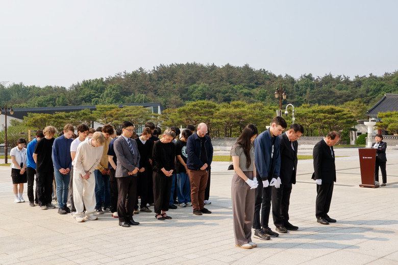 이날 참배에는 독일 학생과 교사 외에도 이정선 교육감, 고준상 광주과학고 교장, 광주과학고 학생·교원 16명, 지난 3월 독일 방문했던 ‘글로벌 리더 세계 한 바퀴’ 민주인권평화통일 팀 소속 학생 6명이 함께 했다.