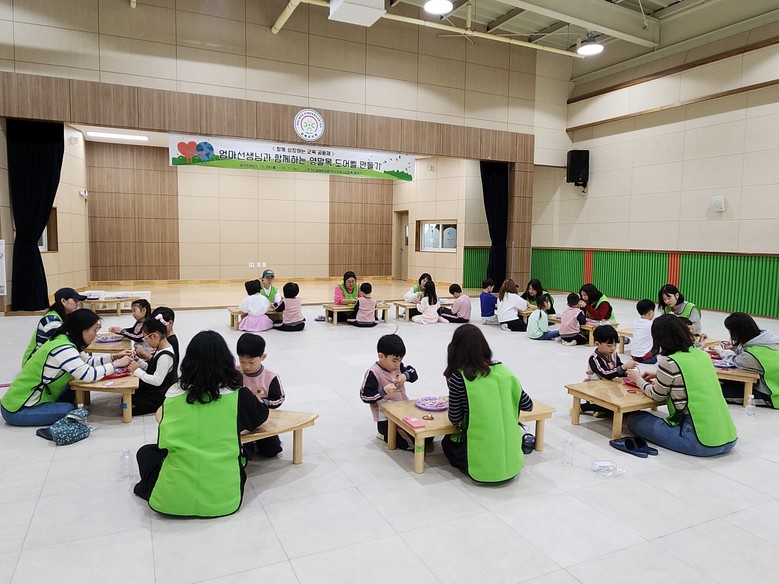 학부모 그림책 동아리 회원들의 참여로 유아들이 직접 고른 책을 함께 읽고, 책의 내용을 주제로 한 다양한 놀이가 이루어졌으며, 양말목 동아리 회원들이 운영한 활동에서는 버려지는 양말목을 엮어 문걸이 장식을 만드는 친환경 공예놀이가 진행되었다.
