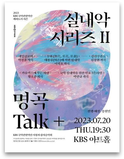 2023년 KBS 시청자 감사음악회 두 번째 실내악시리즈 ’명곡 Talk+‘는 우리 시대의 새로운 국악, 젊은 감각의 한국 창작음악 명곡들을 친절한 해설과 함께 감상할 수 있는 공연이다.