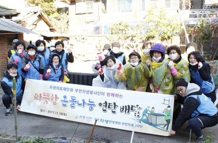 이날 ‘이웃사랑 연탄 나눔’ 행사에서 부천자생봉사단 20명은 독거노인들을 위해 추운 날씨 속에서도 구슬땀을 흘려가며 연탄을 옮겼다. 연탄은 약대동 일대 독거노인들에게 전달됐으며 행사에 쓰인 연탄은 자생의료재단이 후원했다.