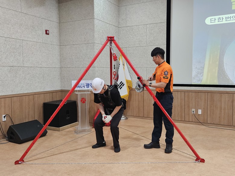 훈련은 밀폐공간 내부의 유해·위험요인 종류와 위험성, 호흡용 보호구 착용법, 구조장비 사용법과 심폐소생술 등 응급처치에 대해 교육하고, 심폐소생술 실습을 통해 안전사고 발생 때 신속한 현장조치가 가능하도록 했다.