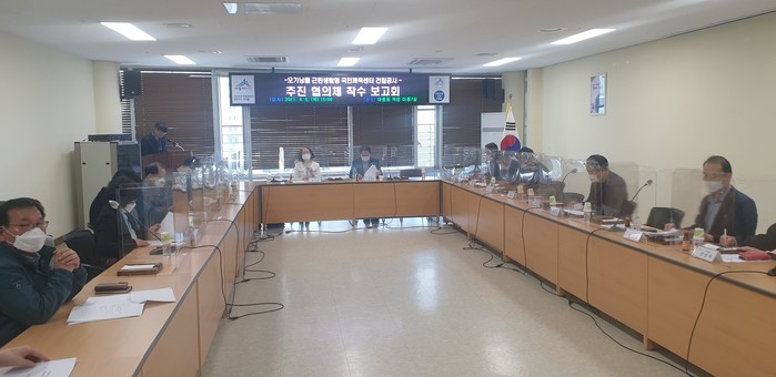 지난 8일 아름동복합커뮤니티센터에서 열린 ‘오가낭뜰 근린생활형 국민체육센터 건립’ 공사 착수보고회에서 상병헌 의원은 국민체육센터 건립 추진협의체 윤은규 위원장과 위원, 주민 등과 함께 공사 안전 대책과 향후 공사 일정 등을 청취했다.