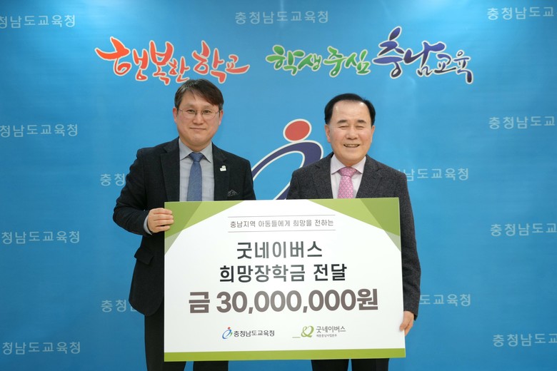 충청남도교육청에 따르면 굿네이버스 세종충남사업본부는 충남지역의 위기가정 아동을 위해 ‘희망장학금’ 3천만원을 지원한다. 이번 희망장학금은 충남 지역 내 유ㆍ초ㆍ중ㆍ고등학생 300여명에게 지원될 예정이다.
