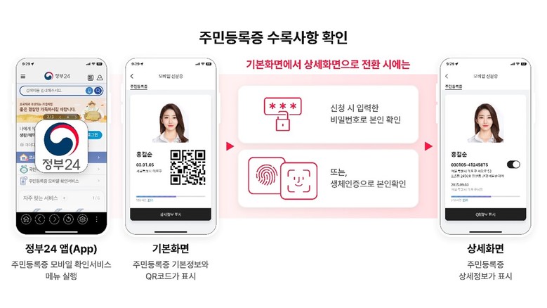 통신3사와 행정안전부 협력 결과… 민간 최초 모바일 주민등록증 확인 서비스