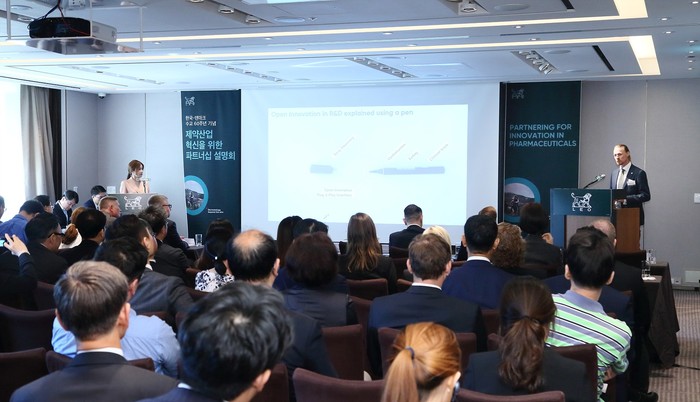이날 저녁에 열린 설명회에서는 덴마크 프레데릭 왕세자(Crown Prince Frederik)가 자리에 참석한 가운데, 페어 옥켈스(Per Okkels) 덴마크 보건복지부 차관의 축사를 시작으로 레오파마의 R&D 협력 모델인 ‘오픈 이노베이션(Open innovation) 에코시스템’ 과 ‘사이언스&테크 허브(LEO Science & Tech Hub)’에 대해 소개하는 시간을 가졌다.