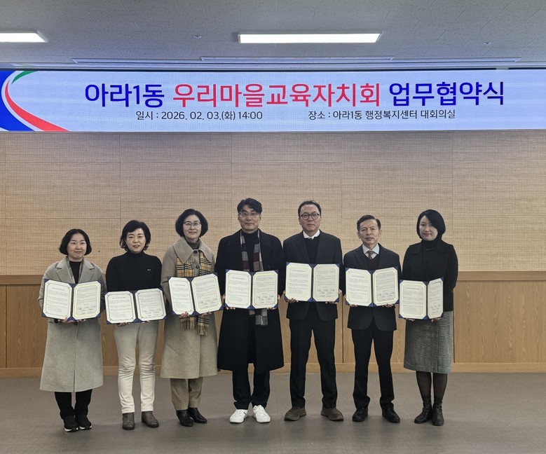 아라1동 우리마을교육자치회는 인천아라초등학교, 인천아람초등학교, 인천해든초등학교, 인천아라중학교, 인천아라고등학교, 아라1동 행정복지센터, 아라1동 주민자치회가 협약에 참여했다.