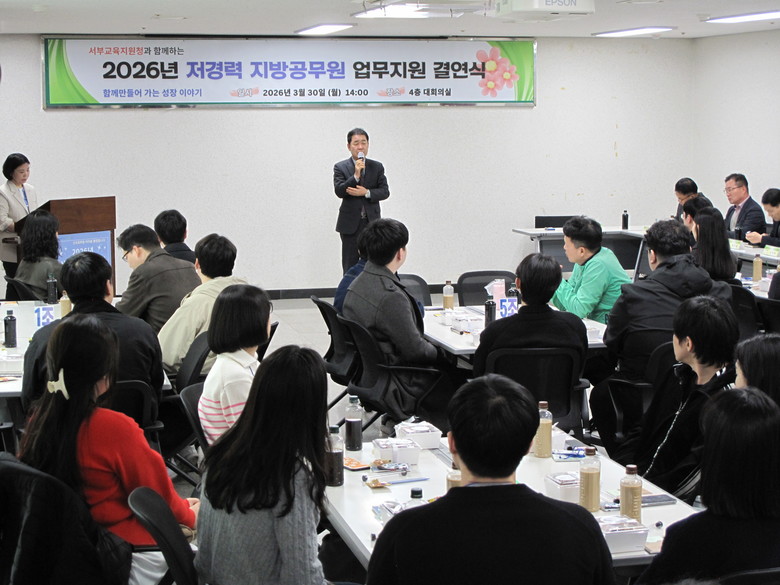 [인천 세계타임즈=심하린 기자] 인천서부교육지원청(교육장 김석봉)은 저경력 지방공무원의 학교 현장 적응을 돕고 실무 역량을 강화하기 위해 지난 30일 ‘신규 지방공무원 업무지원 결연식’을 개최했다.